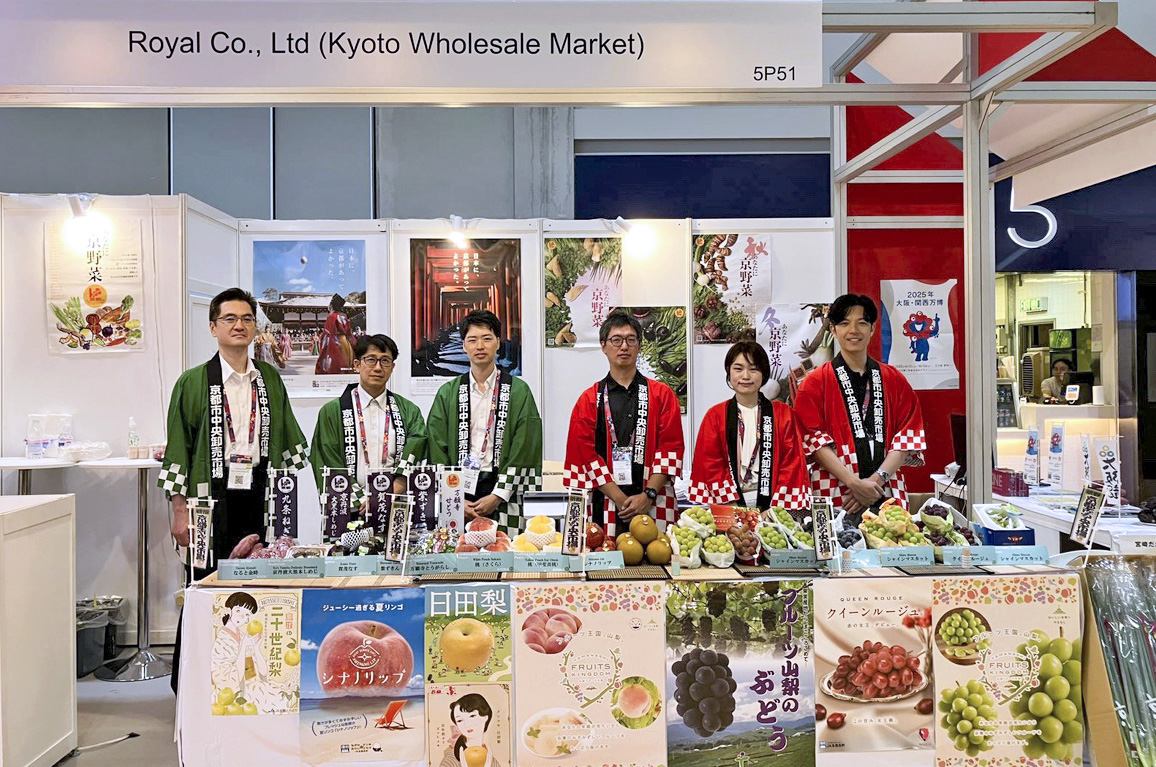 9/3~9/5の3日間、香港で行われた青果物の展示会に出展し、京都中央卸売市場を経由して我々が輸出をしている日本の果物や野菜を展示、試食品を提供しました。