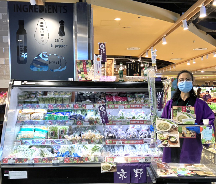 現地インポーター様にご協力を頂き、香港イオンスタイルで京野菜フェア実施していただきました。京野菜を使ったレシピ提案をしていただき、京野菜の海外における認知度アップに繋がったと思います。