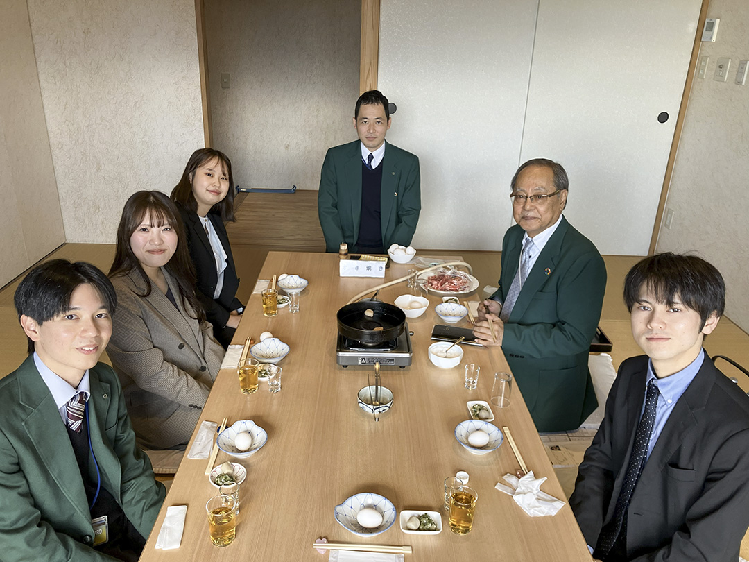 研修後は社長を交え、全員ですき焼きをいただきました。