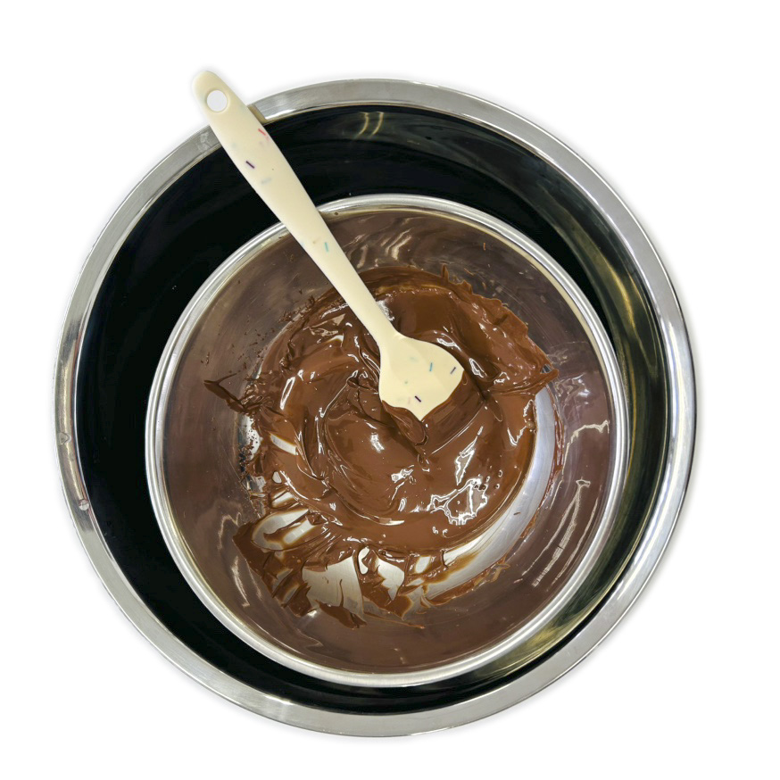 刻んだチョコをボウルに入れ、湯せんで溶かします。