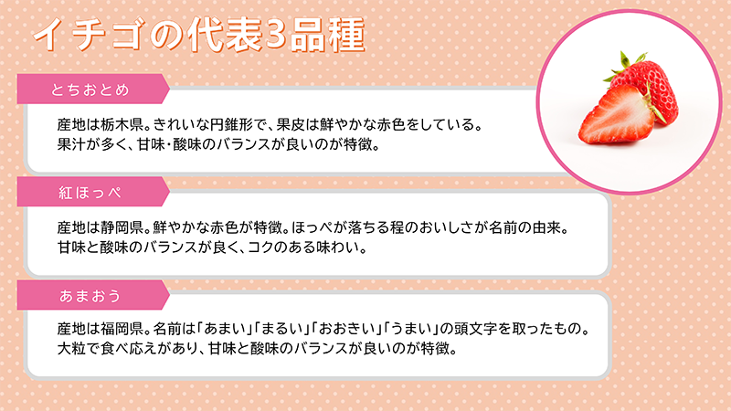 ここで紹介した以外にも、白いイチゴの品種など、イチゴにはさまざまな品種があります!